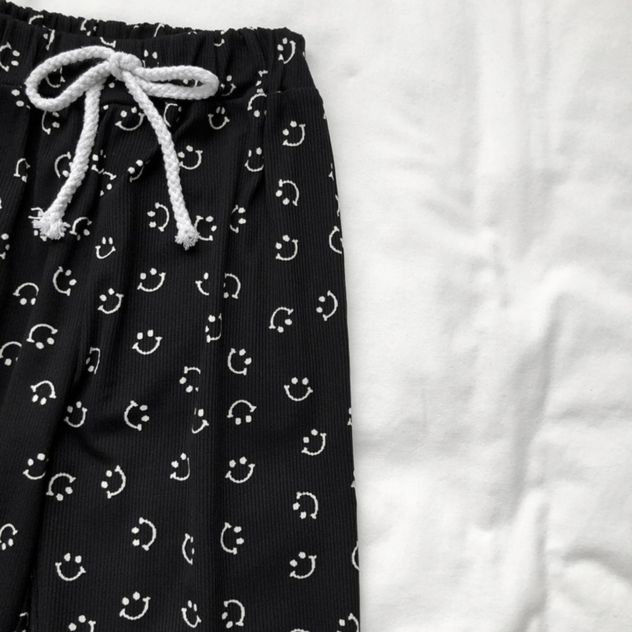 スマイルちゃんが散りばめられたセットアップです。シルエットもおしゃれなのでこのセットだけでモデルコーデが完了!